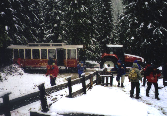 V pondelok nás autobus priviezol po ceste plnej serpentín a na niektorých miestach takej úzkej, že som pochybovala o tom, či tam autobus vôbec dokáže prejsť, do Lienzer Dolomiten k Dolomiten Hűtte (1620 m) a odtiaľ sme pokračovali ďalej ku chate Karlsbader Hűtte. V nadmorskej výške 2260 m náš plán pokračovať vyššie zmarili vrtochy počasia, zaskočila nás pani zima teplotou okolo nuly, vytrvalým snežením a vianočnou fujavicou. O chvíľu sme kráčali asi dvadsaťcentimetrovou snehovou pokrývkou.